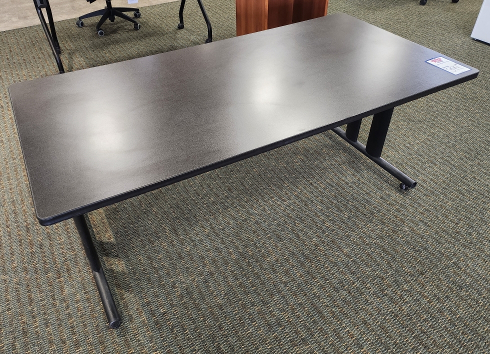 Rectangular worktable, 72" wide x 36" deep x 28 1/2 " high with black frame legs. Finish: Charcoal laminate top.
