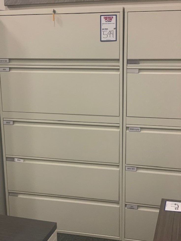 Five High Lateral Files by Global, 36" wide x 18" deep x 65.5" high. Finish - Nevada, Quantity: 2 Price $ 549.00 each