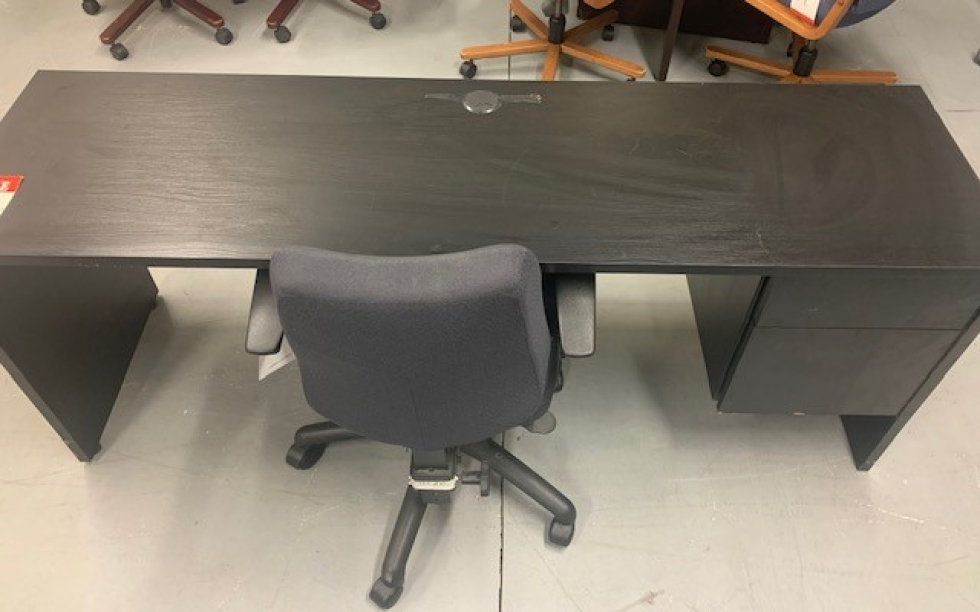 Rectangular Credenza, 72" wide x 20" deep, with Hanging Box/File Pedestal and One Surface Grommet. Finish - Black