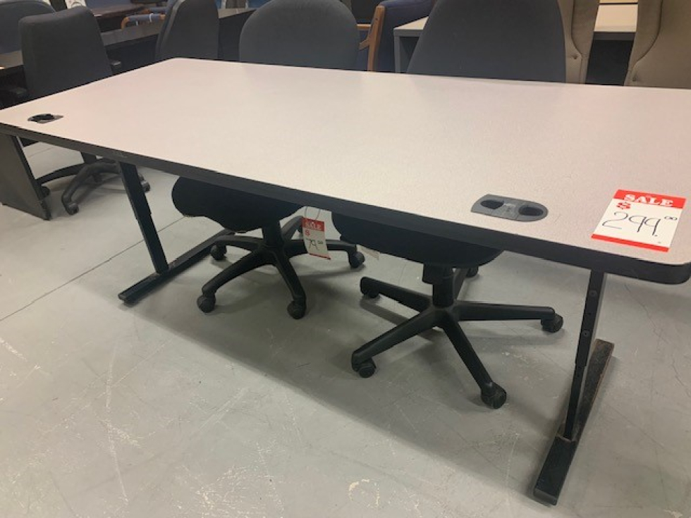 Rectangular Worktable, 72" wide x 29.5" deep, with Two Surface Grommets and Black Metal Legs, Top Finish - Speckle Grey