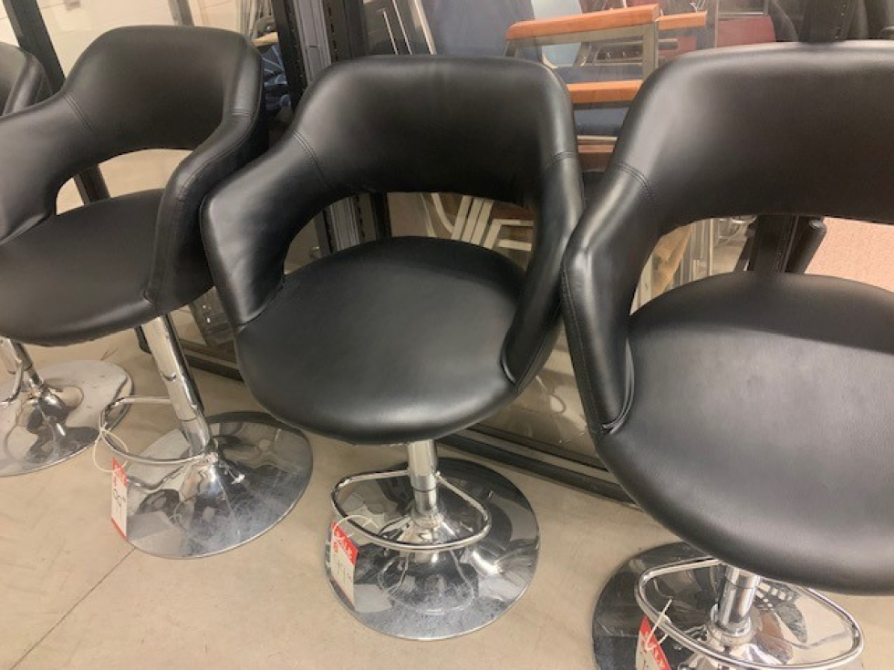 Used Barstools with Chrome Bases and Black Vinyl Back and Seat. Quantity: 7 $99.00 each